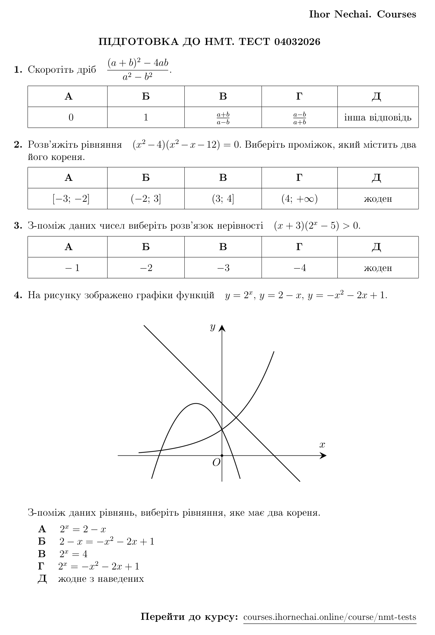 Переважна більшість тестів цього курса з НМТ минулих років, проте створено спеціальну послідовність, в якій на початку розміщено більш прості варіанти.